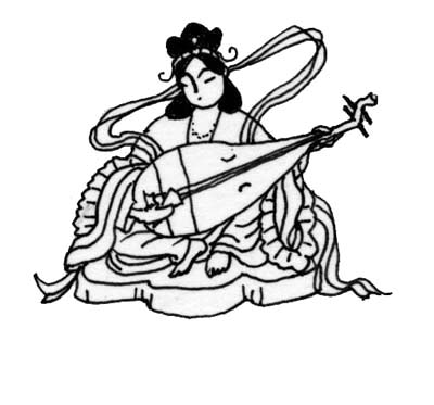 Also written 瓣財天. Sk: Sarasvati. A Buddhist goddess of music, learning, eloquence, wealth, longevity, and protection from natural disasters. Among her many variant names are Daibenzaiten 大弁才天, Myōonten 妙音天, Bionten 美音天, and, most common, Benten 弁天. A river goddess in Indian mythology, she was adopted into the Buddhist and then Shinto pantheons. This origin helps to explain why many Japanese temples and shrines dedicated to Benzaiten (including those at Itsukushima 厳島, Enoshima 江ノ島, and Chikubushima 竹生島) are located near water. As described in the Konkōmyō saishōōkyō 金光明最勝王経 (translated into Chinese by Yijing 義浄 in 7th century), Benzaiten has eight arms with hands that hold a bow, arrow, sword, ax, spear, long pestle, iron wheel, and silk rope. The earliest Japanese example, an 8th-century sculpture at the *Hokkedō 法華堂 (Sangatsudō 三月堂) of Tōdaiji 東大寺 is of this type. In another form, Benzaiten is represented as a plump woman dressed in a flowing Chinese style gown and holding a four-stringed lute, or biwa 琵琶. This iconic type first became popular in the 13th century, a well-known example being the sculpture with wood body dressed in silk robes at Tsurugaoka Hachimangū 鶴岡八幡宮 in Kanagawa Prefecture. She is sometimes depicted seated on a white serpent. In Esoteric Buddhism mikkyō 密教, Benzaiten was associated with Fifteen Sons or Disciples, jūgo dōji 十五童子. They are: Aigyō 愛敬, Hangi 飯櫃, Hikken 筆硯, Gyūba 牛馬, In'yaku 印鑰, Jūsha 従者, Toshō 斗升, Ishō 衣装, Kantai 官帯, San'yō 蚕養, Sensha 船車, Shusen 酒泉, Shōmyō 生命, Tōchū 稻籾, and Konzai 金財. In the Muromachi period, Benzaiten was grouped within the seven gods of good fortune *shichifukujin 七福神. Through this association, during the Edo period her popularity grew with the merchant and urban classes, and new temples and shrines were dedicated to her. Benzaiten is often confused with *Kichijōten 吉祥天.