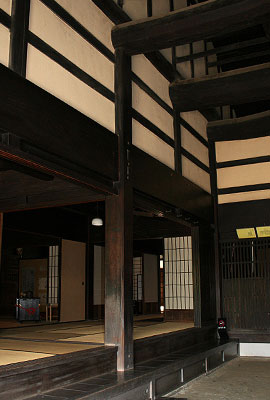 2 A structural post *hashira 柱, in vernacular houses *minka 民家, which was considered to be an embodiment of *Daikokuten 大黒天, one of the seven gods of good fortune *Shichifukujin 七福神. Daikoku had come to be associated with the kitchen and hearth and was regarded as a tutelary deity of the house. The post was located in a variety of places in the house: a) most commonly at the interface between the earth floored area *doma 土間, and the living rooms kyoshitsubu 居室部, approximately at the center of the building's cross-section. This location marked the boundary between the public front half of the house, hare 晴, and the private domestically-orientated zone toward the rear, ke 褻; b) on the upper side *kamite 上手 of the large room(s), *hiroma 広間 adjacent to the earth-floored area. In the case of houses with a 4-room cross-plan ta-no-jigata 田の字型, the daikoku-bashira marked the center of the plan where the arms of the cross intersected. Examples of this type were found in parts of Tottori and Aichi Prefectures; c) in townhouses *machiya 町家 with a deep plan, the daikoku-bashira was located at the boundary between the raised living rooms and the earth corridor *tōriniwa 通り庭. It was sometimes located at the interface between the front room or shop *mise 店 and the room to the rear of it, or in some cases was further back at the boundary between the living room *oue 御上, or *ima 居間 and the kitchen *daidokoro 台所; d) in some buildings, all main frame *jōya 上屋 posts at the boundary between earthen and raised areas were daikoku-bashira. Multiple daikoku-bashira of this type were common in the Kanagawa and Tokyo area. The daikoku-bashira was often the largest post in the house: its large dimensions may be explained to some extent by the need for a stout post at the center of the structure to support the ridge *munamochi-bashira 棟持柱 or a large beam parallel to the ridge *ushibari 牛梁, as house plans deepened and intermediate posts were omitted. There was also a tendency to oversize the daikoku-bashira because of its symbolic importance, and it was often the first post to be erected when a house was under construction. As a sacred post im-ibashira 忌柱, it was considered a guardian of a household's wellbeing and a status symbol. In addition to the daikoku-bashira, houses sometimes included other sacred posts, notably the *ebisu-bashira 恵比須柱, and the *niwa daikoku-bashira 庭大黒柱, but the daikoku-bashira was usually considered the principal sacred post and was accorded this.