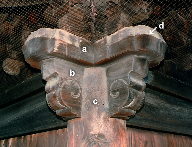 a) daiwa 台輪 b) *kashiranuki 頭貫 c) *hashira 柱