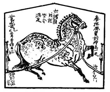 Lit. horse painting. Illustrated wooden plaques given as votive offerings to shrines and temples.