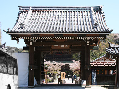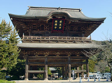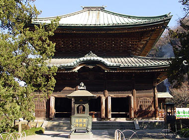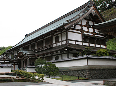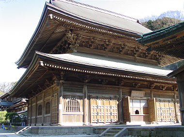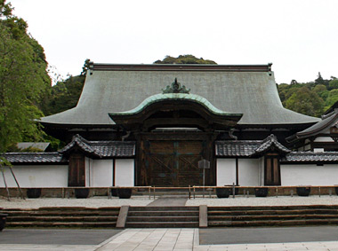 The arrangement of buildings within the precinct of a Buddhist temple constructed between the late 7th century to 12th century. The position of buildings and the buildings themselves varied according to era, religious sect and the surface configuration of the land. The earliest temples were established in Nara. Excavations of the Asukadera 飛鳥寺 site and the Wakakusa 若草 site adjacent to present Hōryūji revealed two of the earliest arrangements of temple buildings. The Asukadera style asukadera shiki 飛鳥寺式, had three image halls *kondō 金堂, one in the west *saikondō 西金堂, one in the east *tōkondō 東金堂, and a third, the central chūkondō 中金堂, larger than the other two, was placed on the same axis as the south gate nanmon 南門, and middle gate *chūmon 中門. The pagoda *tō 塔 was placed forward from the chūkondō on the same axis, and situated exactly in the middle of the east and west pagodas. The three kondō and pagoda were surrounded by a corridor *kairō 回廊. The only access was through what were thought to be a belfry *shōrō 鐘楼, and a sutra storage area *kyōzō 経蔵 that were outside the corridor. The Shitennōji 四天王寺 style is exemplified by the latest rebuilding of the temple, Shitennōji in Osaka. It has one pagoda that is placed on the same axis as the south and middle gates. Beyond the pagoda and on the same axis are the image hall and lecture hall. The latter is set within the rear corridor. Outside the sacred enclosure are a belfry and sutra storage buildings and far to the rear, are the dormitories and refectory *jikidō 食堂. The excavation of the Hōryūji Wakakusa garan 法隆寺若草伽藍 proved to have the same configuration as Shitennōji. The Hōryūji style has one pagoda on the left and image hall on the right. Originally, the corridor beginning on each side of the center gate completely enclosed them. The lecture hall, belfry, and sutra repository were at the back outside the corridor. Dormitories were on either side. At a later date, the corridor was extended to include the lecture hall, the belfry, and sutra repository. The Kawaharadera 川原寺 site revealed that there was a west image hall with a pagoda facing it from the east, and a central image hall connected with another enclosure containing the belfry, sutra repository, and lecture hall. Kanzeonji 観世音寺 had the same plan as Yakushiji 薬師寺 in Nara, a plan that was typical in the 8th century. A corridor extending from each side of the middle gate terminated at each side of the lecture hall. There was one image hall and two pagodas, east and west. In line with the gates, hondō and kairō was the refectory jikidō. The Kōfukuji 興福寺 style follows a north-south axis plan. A corridor provides a protected passage from the middle gate to the image hall. The lecture hall, although on the same axis, is outside the enclosure. There are two image halls separated from the main axis. A refectory is located to the east, and Hokuendō 北円堂 (north octagonal hall) in its own enclosed compound on the west side. At Tōdaiji 東大寺, the pagodas are arranged outside the main complex to the east and west, and are enclosed in corridors. During the Heian period with the introduction of new Buddhist sects (Tendai 天台 and Shingon 真言 sects), temples were often built in mountainous areas resulting in an asymmetrical arrangement of buildings. Also because these sects are basically esoteric, new buildings for different purposes such as the *jōgyōdō 常行堂, *tahōtō 多宝塔, and kanjōdō 灌頂堂 were also built. Examples: Enryakuji 延暦寺, Jōgyōdō and Hokkedō 法華堂 (1594), Shiga Prefecture.; Negoroji 根来寺 Tahōtō 多宝塔 (*Daitō 大塔). Also during the Heian period two other sects of Buddhism, the Pure Land sects (Jōdo 浄土 and Jōdoshin 浄土真 sects) arose, and both had a special devotion to *Amida 阿弥陀 (Sk. Amitabha) who rules over the Western Paradise saihō 西方. During the 10th-11th century, when the power of the Fujiwara 藤原 clan was at its peak many large Pure Land temples were built under its aegis. Every effort went into making these temples replicas of the the Amida's Western Paradise. Fujiwara Michinaga 藤原道長 (966-1027) created a grand, palacial temple, Hōjōij 法成寺 in Kyoto. It is no longer extant but the assumed plan of the temple has been drawn by Fukuyama Toshio 福山敏男. The focal point was the *amidadō 阿弥陀堂 and faced a pond giving the temple a close relationship to the shinden style *shinden-zukuri 寝殿造. The Byōdōin 平等院 *Hōōdō 鳳凰堂 is a mid-11th century example. Temples with multiple Amida statues were popular, some housing as many as nine statues. The only example extant image hall is the Hondō 本堂 at Jōruriji 浄瑠璃寺 (1107) in Kyoto. (Also called Kutaiji 九体寺, lit. the Temple of Nine Images). It faces a pond and on the opposite side is a 3-storied pagoda, Sanjū-no-tō 三重塔 (12th century). New sects of Buddhism introduced in the 13th century, especially, the Zen sect, used a different plan in the arrangement of buildings and added new buildings needed for their particular religious worship. The large temples were again built on level ground on a north-south axis influenced by the Chinese seven hall arrangement shichidō garan 七堂伽藍. The seven buildings included: the Buddha hall *butsudō 仏堂, hall for meditation *hattō 法堂, kitchen *sōdō 僧堂, kubō 庫房 or *kuri 庫裡, entrance gate *sanmon 三門, sometimes interpreted as a spiritual entrance as well as physical entrance (see *sangedatsumon 三解脱門), latrine seijō 西浄, and bath house yokushitsu 浴室. These seven were the basic buildings but large Zen temples often added many traditional buildings such as a pagoda, tō, belfry, shōrō, drum tower *korō 鼓楼, the head priests quarters, *hōjō 方丈, and dormitories,