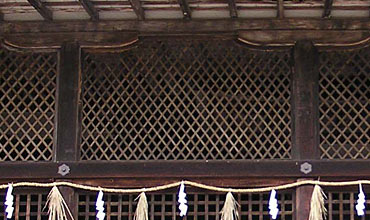 1 Diamond- or lozenge-shaped lattice or muntins used on doors, transoms, and fences *hishigaki 菱垣. Doors with diamond-shaped latticework are called hishigōshido 菱格子戸 and transoms with a diamond-shaped lattice are called hishigōshi ranma 菱格子欄間. One example is the hishigōshi found at Ryōanji 龍安寺 (late 16th century) in Kyoto.