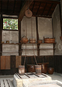 2 In parts of Shiga Prefecture, a large communal tub for drinking water. Several tubs were placed at convenient points in a village and fed with clean water through bamboo pipes. The tubs were about 1.5 m high and 4.5 m in circumference.