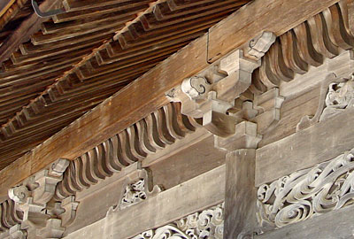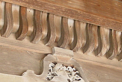 Also called honshirin 本支輪 (main shirin). A short, curved, non-supporting transitional member that connects diagonal beams that are positioned at different levels. The most generally used *shirin 支輪, they are very closely spaced suggesting the curved shape of a snake's belly. Jabara shirin are wayō style *wayō 和様 structural elements. Example: Myōōin Hondō Naijin 明王院本堂内陣 (1321), Hiroshima Prefecture.