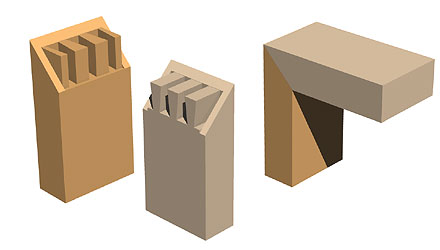 Lit. a hidden mitered dovetail joint, or blind mitered dovetail joint. Also called kakushiarigata kumitsugi 隠蟻形組接; kakushiarihozo 隠蟻ほぞ, corner miter, sumitome 隅留, sumitomeari 隅留蟻, or hinadome 雛留. An angle joint *shiguchi 仕口 used at the corners of a building to attach non-penetrating tie beams *nageshi 長押 to a pillar *hashira 柱. Two to four dovetail tenons and mortises *arihozo 蟻ほぞ and arihozoana 蟻ほぞ穴, cut on the cross grain, are joined in such a way as to be hidden.