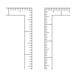 A carpenter's square. It has a long side, about 49 cm, and a short side about 24 cm, and looks like an L shaped ruler. Also sashigane 指矩. It is used to take measurements, make right angles, and mark with India ink on a marking string *sumikake 墨掛. The carpenter's square is made of steel or brass and originally it was graduated in the shaku 尺, sun 寸 and ri 利 system of measurement. Today the metric system is used. Gradations on the frontside of old kanejaku were divided into 1.5 shaku to 1.6 shaku on the long side, and 7.58 sun on the short side. The gradations made on the back urame 裏目 outer edges are the square roots of those on the front side. These gradations are called *uragane 裏矩 or urajaku 裏尺. The gradations on the inside back of the arms are the same as on the front. They are called sashigane, kane 曲 or magarikane 曲矩. The back gradations were devised to handle the corners of the roof around the eaves.