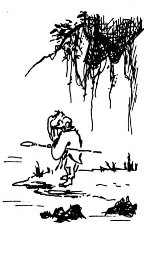 Ch: Xianzi. A semi-legendary 9th-century itinerant priest and eccentric. His name, meaning something like "Clam Priest," is derived from his practice of spending his days wandering along river-banks eating crayfish and clams. Although this practice is in conflict with the Zen 禅 (Ch: Chan) insistence on a strictly vegetarian diet, one story has it that Kensu achieved enlightenment while catching a shrimp. However, eccentrics who disobeyed Buddhist law to follow their own natures were often greatly respected. The earliest description of Kensu is found in the Record of The Transmission of The Lamp (Jp: Keitoku dentōroku 景徳伝灯録, Ch: Jingde Chuandenglu) of 1004 which lists him as a disciple of priest Dongshan (Jp: Dōsan 洞山; 807-69), one of the founders of the Sōtō 曹洞 sect of Zen. Some scholars, however, are wary of this claim and feel Kensu had no firm affiliation with an established order. Kensu reportedly lived near the White Horse Temple (Ch: Baimasi, Jp: Hakubaji 白馬寺) on Mt. Dong 東. In painting, he is usually depicted wearing ragged clothes, holding a crayfish in one hand and a net in the other. Images of Kensu are frequently paired with Zen eccentric *Chotō 猪頭, who is always represented carrying a boar's head. Typically, Kensu's hair is long and sparse and he bears a beatific grin. Among the best-known paintings of the subject are: those attributed to Muqi (Jp: Mokkei 牧谿, Private collection in Japan); by Kaō可翁 (act. mid-14th century; Tokyo National Museum); and Hasegawa Tōhaku 長谷川等伯 (1539-1610; Daitokuji Shinjuan 大徳寺真珠庵, Kyoto).