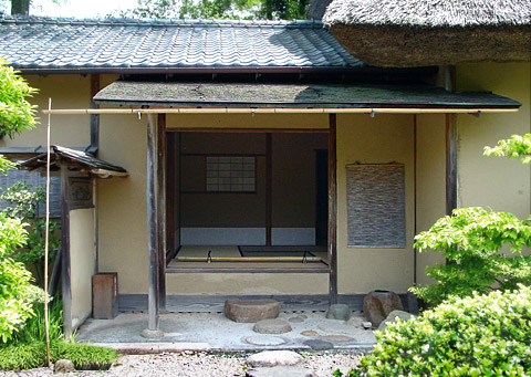 Also kinin agariguchi 貴人上り口. Lit. nobleman's entrance. An entrance made especially for noblemen or other dignitaries so that they can enter a tea ceremony room without bending. If the tea ceremony room is large *hiroma 広間 a kininguchi is provided, but it is not always used for rustic style tea ceremony rooms. The entrance is 1.5 m-1.9 m wide and 1.4 m-1.7 m high, with two paper-covered sliding doors *shōji 障子, that have wooden panels on the lower part. Example: Ninnaji Hitōtei 仁和寺飛濤亭, Kyoto; Kenrokuen Yūgaotei 兼六園夕顔亭, Ishikawa Prefecture.