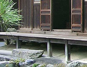 Lit. shoe-removing stone. A flat-topped stone used for taking off one's shoes before entering a *shoin 書院 style tearoom. It is placed below the section of the veranda from where one enters or exits the structure. In rustic tearooms *sōan 草庵, this stone is called the *fumi-ishi 踏石, ichiban-ishi 一番石, or *hatsu-no-ishi 初の石. Kutsunugi may also be written 沓解, 沓抜, or 履脱.