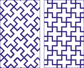 Keywords Architecture Decorations Also written 満字繋, 卍つなぎ. A pattern *mon'yō 文様, or mullion *kumiko 組子, which takes the swastika *manjimon 万字文 form as its overall design.