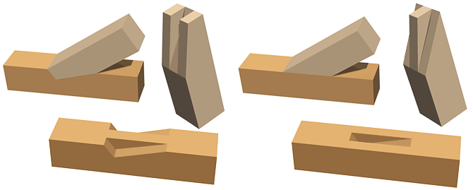 A sloped tenon, which is cut into the end of a beam. The top of the tenon is flush with the top surface of the beam. The indented part is cut on a slant about one third the width of the beam, sloping gradually until the bottom is flush with the under surface of the beam. One variation is kurakakehozo 鞍掛ほぞ, an oblique, housed tenon that fits into a mortise cut on the outer edge of a beam leaving a 30 mm piece in the center. These joints can be used in many places for bracing or reinforcing as for example in corner construction.