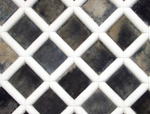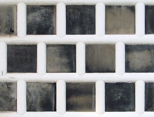 Also written 生子壁. A traditional finish for *dozō-zukuri 土蔵造 and *ōkabe-zukuri 大壁造 walls, devised to protect the vulnerable surface of the plaster from damage caused, in particular, by water. The wall surface is covered with rectangular flat tiles *hiragawara 平瓦, held in position by nails, generally one at each corner of the tile, but sometimes passing through one more holes in the tile. The interstices, meji 目地, between the tiles are then covered with fine plaster *shikkui 漆喰, mounded up into a semicircular cross section, and modelled with great care to attain total regularity of form. It was from a resemblance perceived betweenthe protective strips of plaster, designed to keep the water out, and the sea slug, namako 海鼠, that earned this wall-finishing technique its name. The technique seems to have originated among the warrior elite and was first used in the early Edo period on the *nagaya 長屋 that surrounded warrior mansions, buke yashiki 武家屋敷. By the latter half of the Edo period, namakokabe were being widely used for vernacular houses, particularly on fireproof storehouses *dozō 土蔵 and the walls of urban vernacular houses *machiya 町家, and their outbuildings. Geographically, it was most prominent in parts of western Japan, notably the San'in 山陰 and Sanyō 山陽 areas of western Honshū 本州 and Shikoku 四国, and, from the 19th century, further east, in the Izu 伊豆 peninsula. A considerable variety of design motifs were employed. In what are believed to have been the earliest types the tiles are simply set in straight horizontal rows with the joints of the different courses either aligned, umanori meji 馬乗り目地 or staggered, imomeji 芋目地. These did not shed water well, and soon deteriorated, so other patterns were tried, notably shihanbari 四半貼り, in which the tiles were hung diagonally, forming a lozenge or diamond-like pattern. This pattern was the most efficient at shedding water and soon became the most common, though a range of still more decorative motifs were also developed, such as the *shippōmon 七宝文. When the nails were passed through holes in the tiles, circular blobs of plaster were used to cover their heads, thus creating another geometrical pattern.