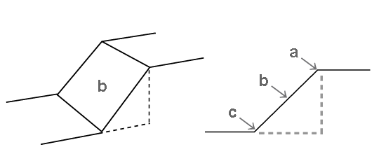a) norikata 法肩 b) norimen 法面 c) norijiri 法尻