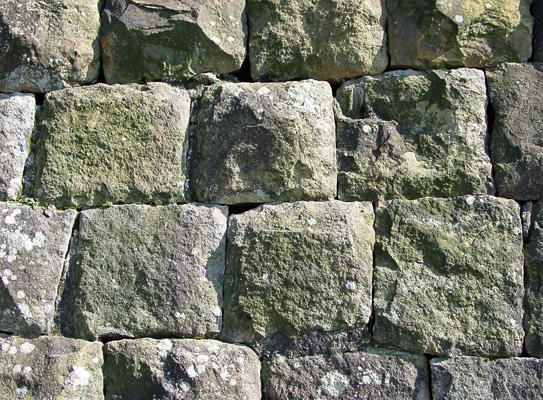Lit. "cloth construction." Ashlar construction. Also termed nunozumi 布積 (cloth piling). A technique used in dry stone wall *ishigaki 石垣 , construction, where rectangularly hewn stones are laid sideways in even horizontal rows. The width of the stones varies, but their heights are perfectly aligned. Horizontal gaps are filled with smaller stones called tomogai-ishi 友飼石. Nunozuki is the most common technique used to build the majority of Japanese castle walls. The pattern created by joints between stones is called yaburemeji 破目地. Sometimes the stones are carefully squared off, horizontally as well as vertically, giving even rows resembling a brick facade. These tight fitting stones with even faces leave little room for attackers to find foot and hand holds for climbing assaults. The pattern created by joints is called yotsume meji 四目目地. This construction technique was used mainly for the foundations of castle gates, towers *yagura 櫓, and the lower sections of the parapets.