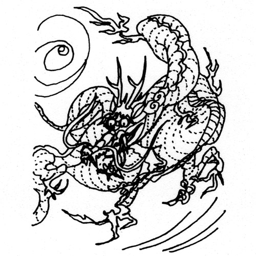 1 Mythological animal and cosmological symbol of Chinese origin. The beginnings of dragon myths are obscure, but belief in such a creature predates written history. The image of the reptilian dragon as known today throughout East Asia had achieved its form by the 9th century in Tang ink painting. Typically the dragon is covered with scales, has a long serpentine body with a scalloped dorsal fin, claw-like feet and pointed tail. Its face is distinguished by small horns, large eyes with bushy brows, flaring nostrils, long whiskers and sharp teeth. The dragon is associated with water, and is often shown emerging from vapor and clouds to produce rain. Living in the sky, it is considered closely related to heaven, and from early times was used as a symbol of imperial power. In addition to serving as a deity of rain and of Heaven, the blue-green dragon seiryū 青竜 is the directional symbol of the east, and thus one of the guardian animals of the four directions *shishin 四神. Dragons figure importantly in popular folk beliefs and Taoism, often serving as a vehicle for immortals. By the 9th century, the Chinese had incorporated the dragon into Buddhist thought and iconography as a protector of Buddhas and the Buddhist law. For example the character for "dragon 龍" is often found in temple names. The earliest representations of dragon-like creatures are in the Shang and Zhou dynasties, bronzes and jades bearing abstract animal or monster designs. By the Warring States or Han dynasties, dragons were frequently painted on tomb walls to ward off evil spirits. Beginning in the late Tang period (9th century), the dragon was painted in ink monochrome *suibokuga 水墨画. The so-called Kyūryūzukan 九竜図巻 (Nine Dragons Handscroll, 1244, Museum of Fine Arts, Boston) by Chen Rong (Jp: Chin Yō 陳容, act.1235-58) exemplifies ink painting of the subject in the Song dynasty. Large-scale dragon compositions came to be painted on the walls of imperial buildings and of temples. In painting for the Zen 禅 sects, especially, depictions of dragons and tigers *ryūko-zu 竜虎図 were frequently paired. The famous ink paintings by Muxi (Jp: Mokkei 牧谿, late 13th century) at Daitokuji 大徳寺, Kyoto, served as the model for countless later Japanese painted versions. Dragons came to Japan long before ink painting. Examples are found in handscrolls, such as Chōjū jinbutsu giga 鳥獣人物戯画 (Caricatures of Animals) and Kegon engi 華厳縁起. In Buddhist painting, a dragon appears as the crown of the Dragon King Ryūō 龍王, one of the *Hachibushū 八部衆. Japanese dragon painting reached its apogee in the late 16th to early 17th century paintings by Kano and Kaihō artists, *Kano-ha 狩野派, *Kaihō-ha 海北派. It is often suggested that these dragon paintings were intended as symbols of heroic leadership because the dragon calling forth rain is a metaphor for the enlightened ruler seeking able ministers.