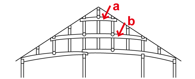 a) sanjūbari 三重梁 b) *nijūbari 二重梁