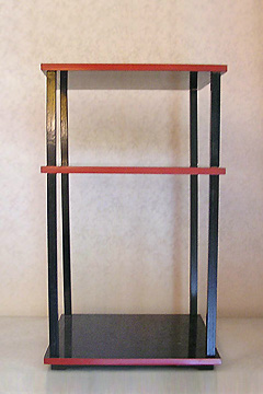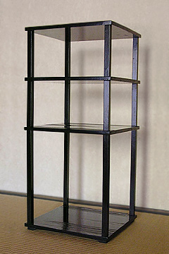 2 A movable set of shelves which has three shelves above a bottom board that sits directly on the floor. Said to have been a favorite of Sen no Rikyū 千利休 (1522-91).