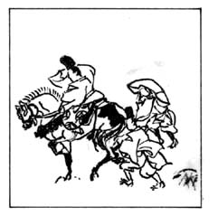 Lit. "crossing the Sano." A historic river crossing often a subject of ancient poetry. The place recorded as Sano 狭野 in Kii 紀伊 Province is now considered to be Sano 佐野 in Shingū 新宮 City in Wakayama Prefecture. In ancient times, there was a pontoon bridge where the Kinokawa 木の川 flowed into Sano bay, and this was called the Sano crossing. A poem on this topic appears in the Man'yōshū 万葉集, but the crossing is best known from a poem by Fujiwara no Teika 藤原定家(also read Sadaie, 1162-1241) in the Shinkokinshū 新古今集 (Winter: #671): koma tomete/sode uchiharau/kage mo nashi/sano no watari no/yuki no yūgure 駒とめて/袖うちはらふ/かげもなし/佐野のわたりの/雪の夕暮 (I have no shelter where I stop my horse; to brush off from the sleeves; snowflakes falling fast at Sano; in the gathering dusk; tran. H.H. Honda). This poem was often pictorialized in *yamato-e やまと絵, with examples extant by Sōtatsu 宗達 (? - 1640?) and Ogata Kōrin 尾形光琳 (1658-1716), depicting Teika on horseback with a sleeve covering his head. In *ukiyo-e 浮世絵 the figure is usually a young woman in *mitate-e 見立絵 fashion.