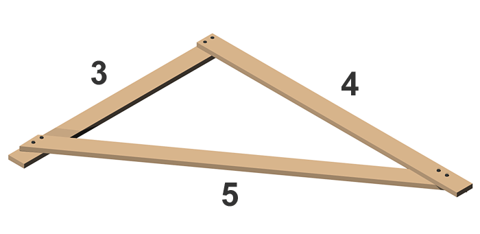 Lit. "three, four, five." A large size right-angled carpenter's square, ōgane 大矩, with a ratio of 3:4:5 cm. The two parts that form the right angle may be the same length or of different lengths. The outer points are connected to form the hypotenuse. Thus, the two parts that form the right angle are designated 3 三 and 4 四, and the hypotenuse is designated as 5 五.