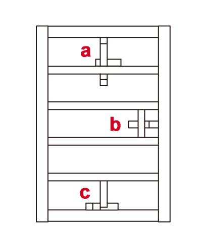 a) agezaru 上げ猿 b) yokozaru 横猿 c) sagezaru 下げ猿