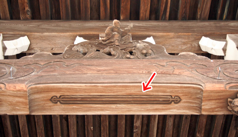 Also shakujōbori 釈杖彫, yuengata 油煙形. A type of decorative carving *horimono 彫物, found on temple architecture. It consists of a shallow channel or groove cut on the underside of a rainbow beam *kōryō 虹梁, and is thought to resemble the staff of a mendicant monk. The decoration first appeared in the Kamakura period, and gradually became more stylized.