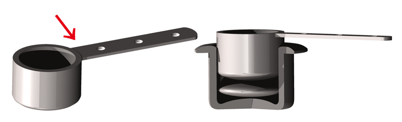 Dipper-shaped metal fixtures used to cover the extended cylindrical ends at the top and bottom of timber doors. After inserting these ends into the dipper shaped metal fixtures, the "handles" of the dippers are bolted to the top and bottom of the doors. The metal covers protect the extended timber ends and also lessen the friction, making it easier to open and close the doors.
