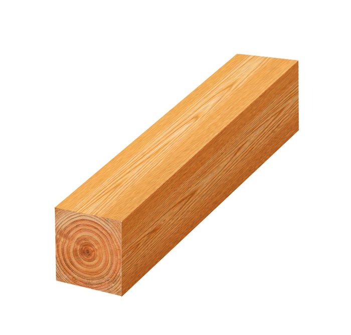 A square beam that has a lengthwise section cut out of it. The cut reaches the center of the log and is made to prevent splitting. As viewed in cross-section, the heartwood is visible.