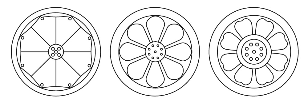 A plain, single-petaled, stylized lotus pattern found on the pendant *gatō 瓦当, of semi-circular, convex eave-end tiles *nokimarugawara 軒丸瓦, during the Asuka period, especially the first half of the 7th century. The number of petals varied from six to eleven. The tips of the petals are often arrowed and are often rolled back on themselves ending in a point or, have only raised dots. Some of the petals have a ridge down the center, containing five or more bead-forms representing lotus seeds. Rims are usually simple and undecorated.