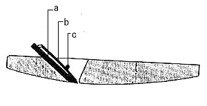 a) kannami 鉋身 b) uragane 裏金 c) uraganedome 裏金留