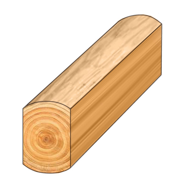 The trimming or hewing of the opposite sides of a log so that the surfaces become flat and parallel making it easier to join it to another member. Examples of members that are attached to taiko-otoshi include: ceiling posts that have one natural surface exposed; logs used as transverse tie beams; and struts attached with a dadoed, half-lapped, half-blind dovetail joint *ariotoshi 蟻落, with full mortise and tenon *hozoana ほぞ穴, *hozo ほぞ.
