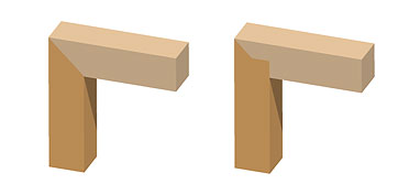 These mitered joints are used for creating a fine finish in the corners of interior trim and for furniture.
