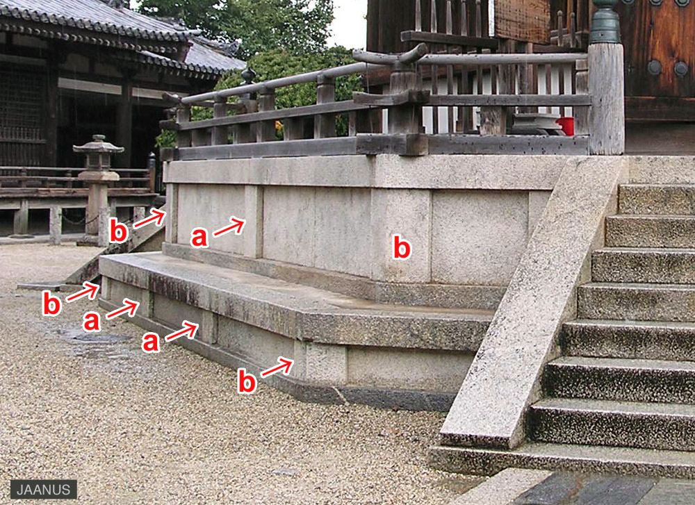a) tsuka-ishi 束石 b) tsuka-ishi 束石 (kadozuka 角束)