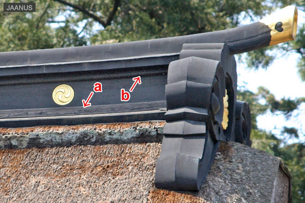 Boards or tiles, tsukenoshi, set above and below the thick boards *aori-ita 障泥板 down which rain is carried off from the ridge *munagi 棟木 to prevent leaking. Also, a board called komabitai 駒額 is placed above the peak of a gable, but beneath the ogre tile plate *oni-ita 鬼板, to prevent leakage.
