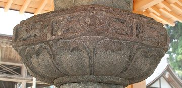 Also written 請花, 受華, 請華; sometimes pronounced ukehana. Flower-shaped support. A support in the shape of an open, upturned lotus flower, usually with 8 petals. Found under the rings *kurin 九輪 of a pagoda spire *sōrin 相輪, under the sacred gem *hōju 宝珠 at the top of a stone lantern ishitōrō 石灯籠 (see *tōrō 灯籠), or on the pedestal *daiza 台座 of a Buddhist statue. Likewise, the ukebana is used under the sacred gem on top of the hexagonal or octagonal two-storied pagoda *tahōtō 多宝塔.
