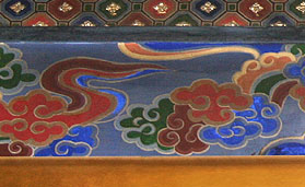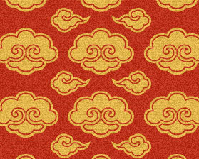 Lit. "cloud design." A broad classification of the various designs used to represent clouds. It is known throughout Asia, and, after water designs, forms the most frequently employed design. It entered Japan through China in the Nara period, when the design was characterized by long trailing tails, known as the tenpyōmon 天平文. It was often combined with designs of good fortune *kisshōmon 吉祥文, such as the phoenix *hōō 鳳凰, *kirin 麒麟, or dragon *ryū 龍.