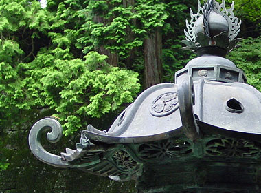 Also warabide. A style of ornamentation which features a curved design based on curling bracken shoots. It is found on the lower rim of bargeboard decorations *gegyo 懸魚 on the coping *kasagi 笠木 of railings *kōran 高欄 in the Zen style *zenshūyō 禅宗様; on the end of the ridge of a palanquin *mikoshi 神輿; on stone lanterns ishidōrō 石灯籠; and on the hilt of a sword tachi 太刀.