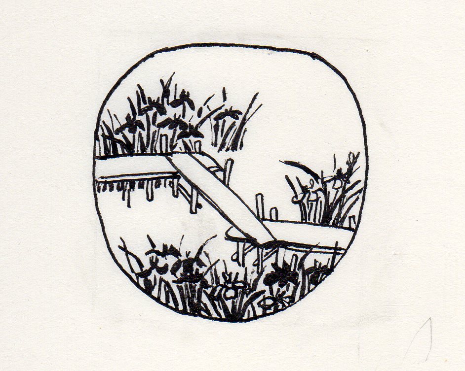 1 Lit. "eight bridges." A type of low bridge built over a shallow pond or marsh using wooden planks without rails, laid in a zig-zag pattern. Although the name yatsuhashi means a bridge of eight planks, the term is also used for bridges of greater or fewer planks. The name yatsuhashi comes from an incident in the 10th-century Ise monogatari 伊勢物語 (The Tales of Ise) in which the story's protagonist and his companions stop to rest at a famous iris marsh traversed by an eight-planked bridge. In Edo period gardens, especially those built by daimyō 大名 (see *daimyō teien 大名庭園), yatsuhashi were often built over iris marshes in an obvious reference to Ise monogatari. A good example is found at Koishikawa Kōrakuen 小石川後楽園, Tokyo.