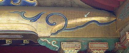 A type of carved molding found on the lower edges of rainbow beams *kōryō 虹梁. The yumimayu forms an arc shape along the edge of the *sodekiri 袖切.